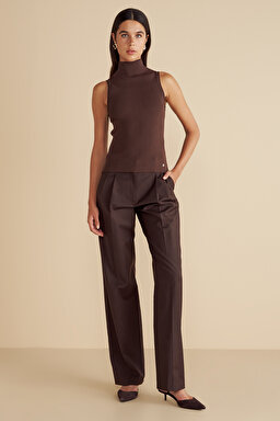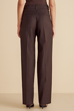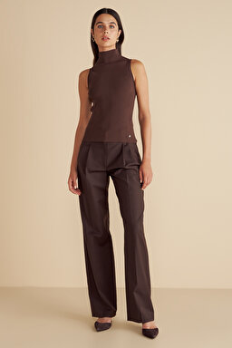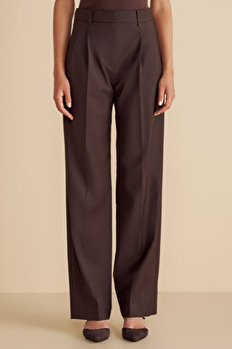 Yün Karışımlı Metal Logolu Çift Pileli Yün Palazzo Pantolon