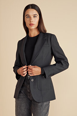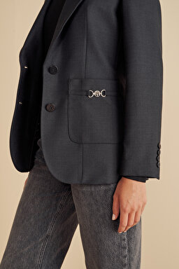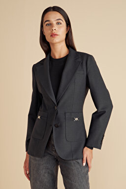 Yün Karışımlı Logo Toka Detaylı Blazer