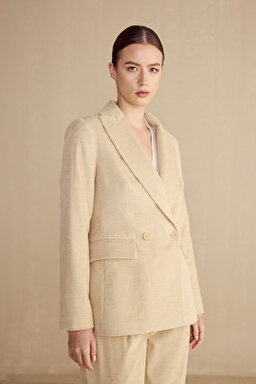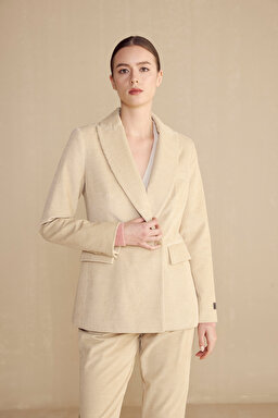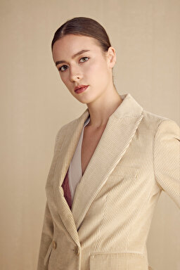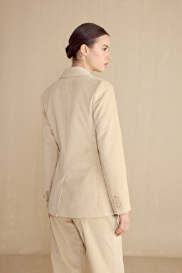 %100 Pamuk Mono Kapama Fitilli Kadife Blazer