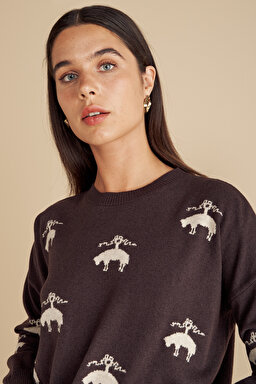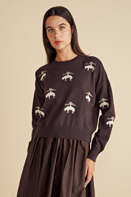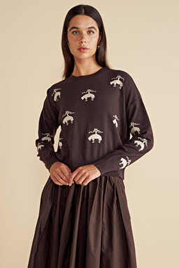 Yün Karışımlı Logolu Bisiklet Yaka Kazak