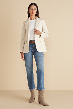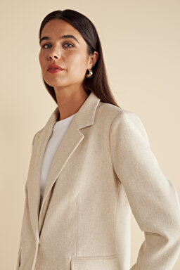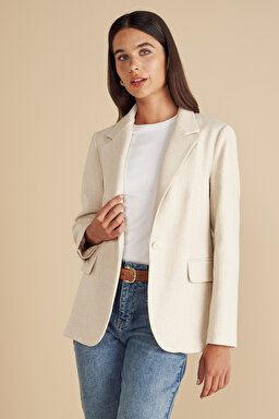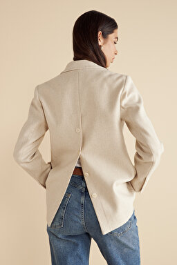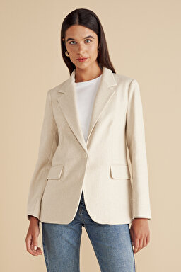 Yün Karışımlı Arkası Düğme Detaylı Balıksırtı Desen Blazer