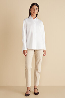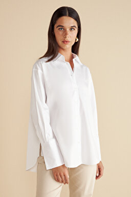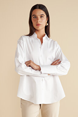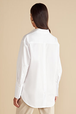 %100 Pamuk Arkası Düğme Detaylı Gömlek
