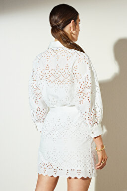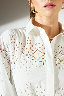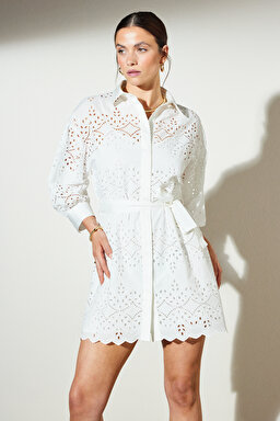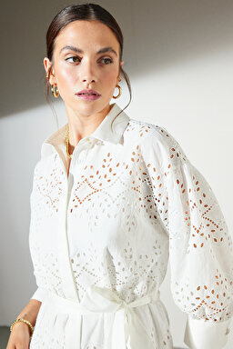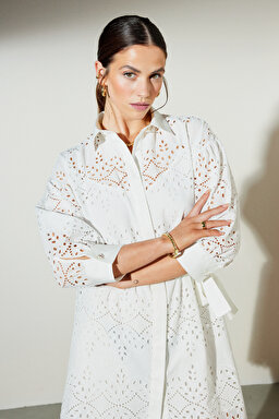 Pamuklu Gömlek Yaka Truvakar Kol Desenli Elbise