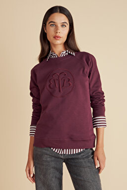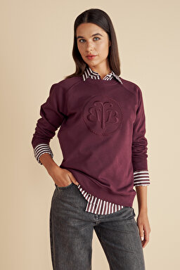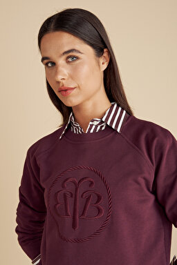 %100 Pamuk Bisiklet Yaka Önü BB Nakışlı Sweatshirt