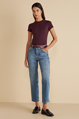 %100 Pamuk Bisiklet Yaka Ribana Basic Tişört