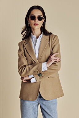 100% Kaşmir Logo Astarlı Loro Pianaı Puntolu Mono Blazer