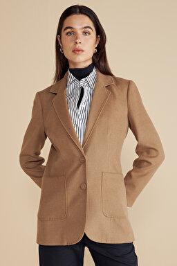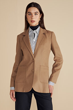Kaşmir Karışımlı Mono Kapama Puntolu Blazer