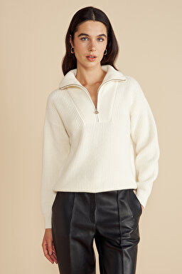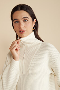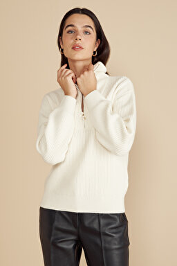 Bato Yaka Fermuarlı Kaşmir Karışımlı Kazak