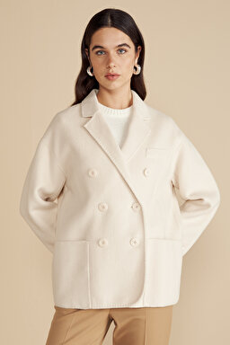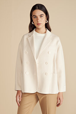El Yapımı Dikişsiz Oversize Kaşmir Kruvaze Blazer