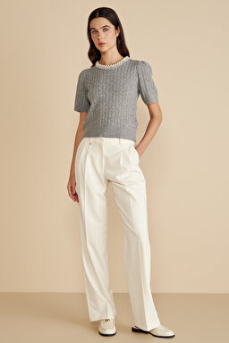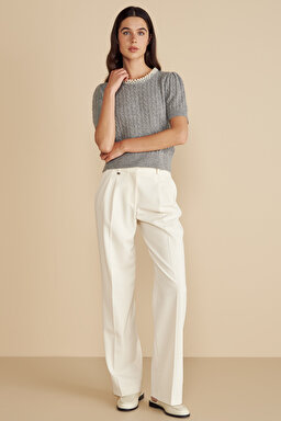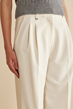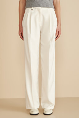 Metal Logolu Çift Pileli Palazzo Pantolon