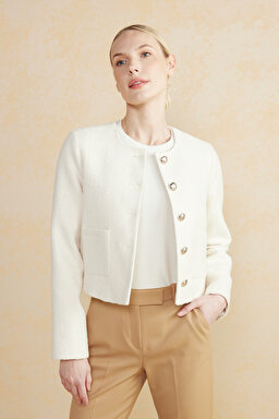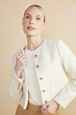 Pamuk Karışımlı Cropped Yünlü Tüvit Ceket