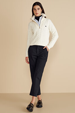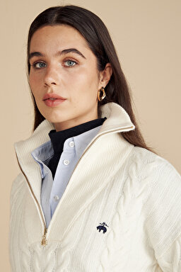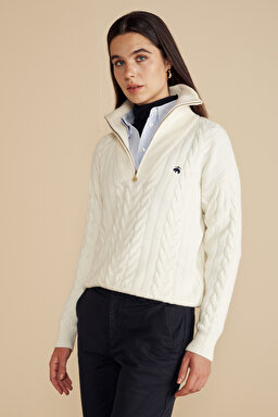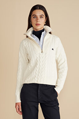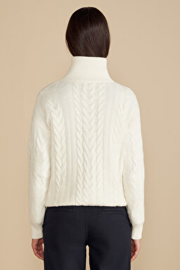 Yün Karışımlı Bato Yaka Saç Örgü Kazak