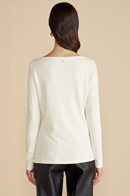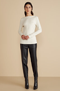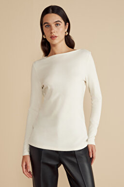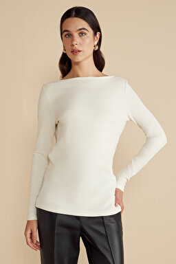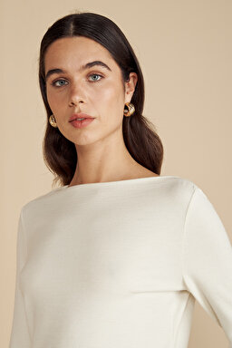 Yün Karışımlı Kayık Yaka Örme Bluz