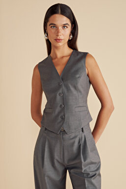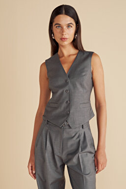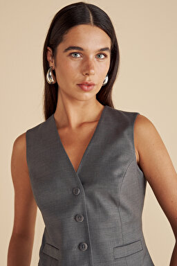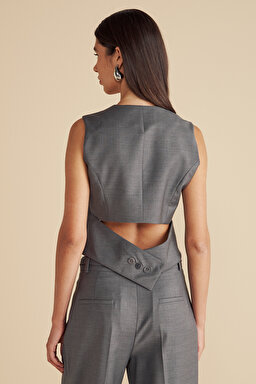 Yün Karışımlı Arkası Cut Out Detaylı Yelek