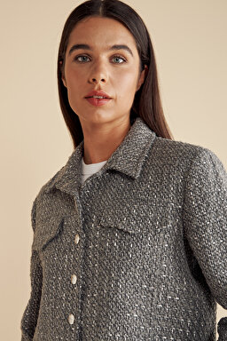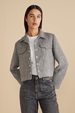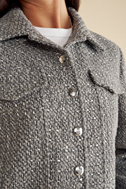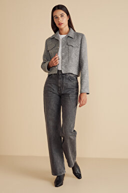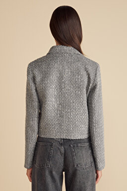Yün Karışımlı Metal Düğmeli Crop Tüvid Ceket