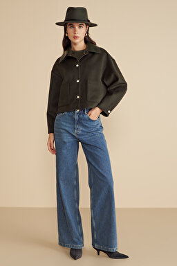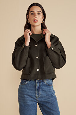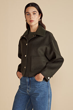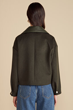 Çıkartılabilir Deri Yakalı Yün Kısa Mont