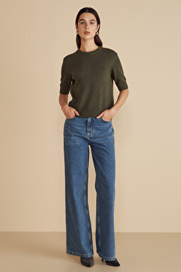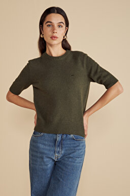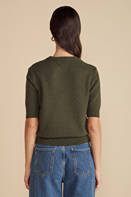 Yün Karışımlı Bisiklet Yaka Kısa Kollu Kazak