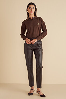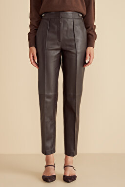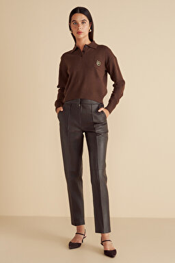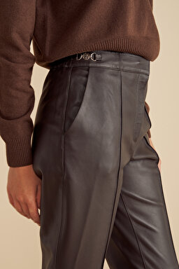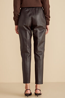 %100 Deri Logo Toka Detaylı Beli Lastikli Pantolon
