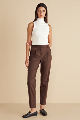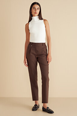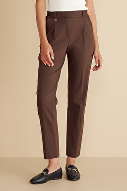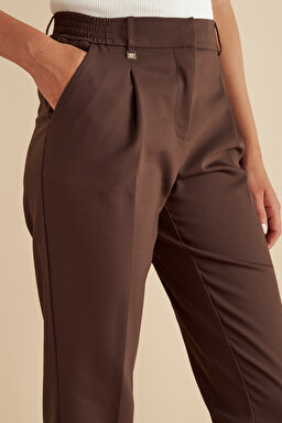 Pamuk Karışımlı Metal Logo Detaylı Yarım Lastikli Pantolon