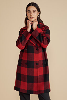 Yün Karışımlı Ekose Desenli Oversize Astarsız Kaban