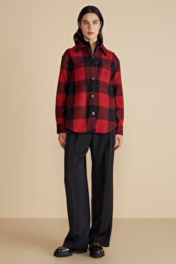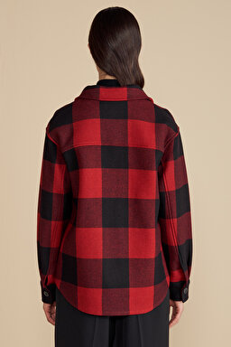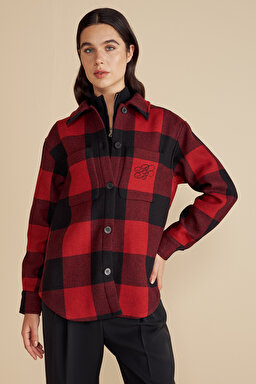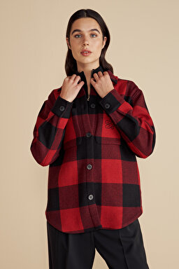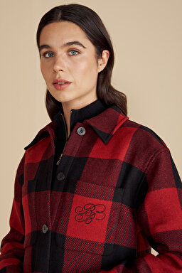 Yün Karışımlı Logo Nakışlı Ekoseli Yün Overshirt