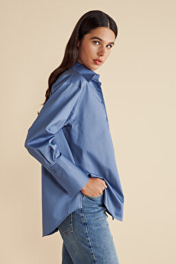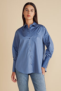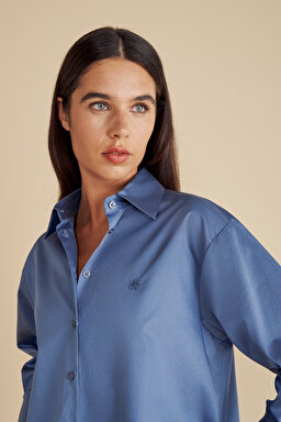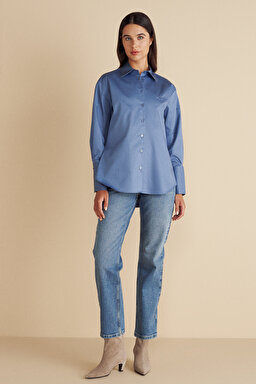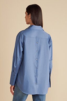 %100 Pamuk Arkası Düğme Detaylı Gömlek