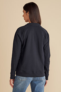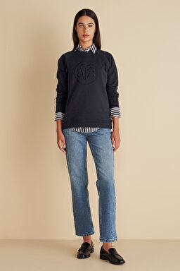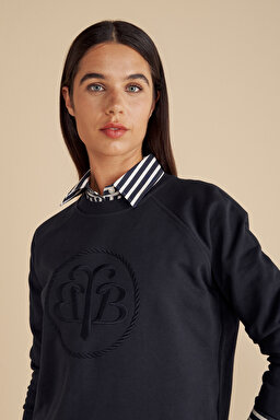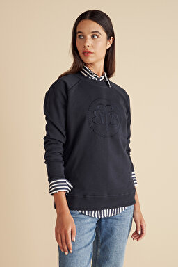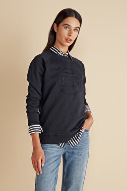 %100 Pamuk Bisiklet Yaka Önü BB Nakışlı Sweatshirt