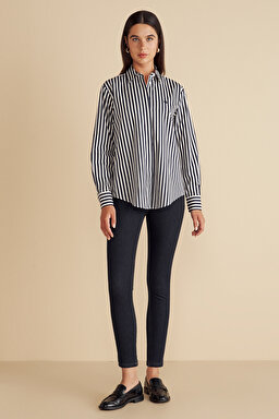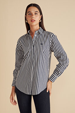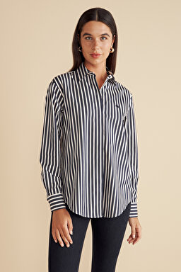 %100 Pamuk Çizgili Oversize Gömlek
