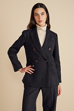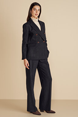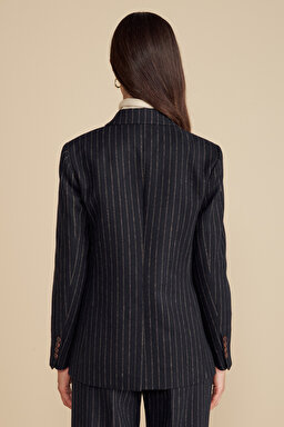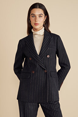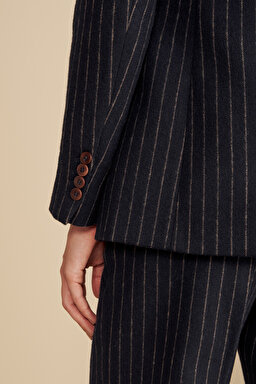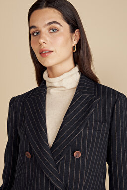 Logo Nakışlı Çizgili Yün Kruvaze Blazer