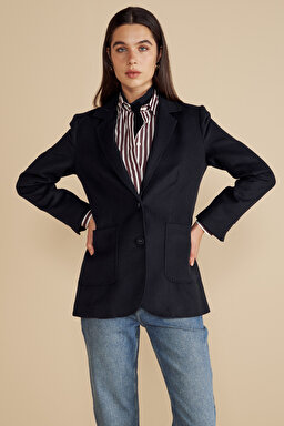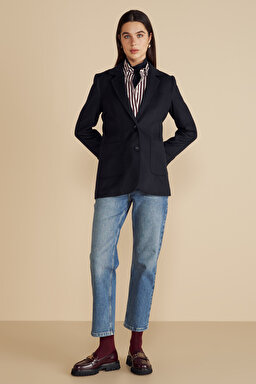 Kaşmir Karışımlı Mono Kapama Puntolu Blazer