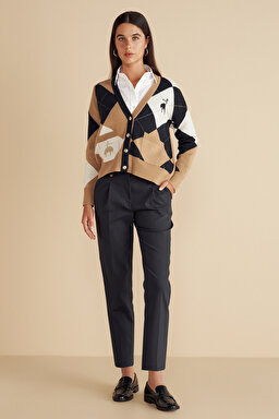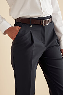 Pamuk Karışımlı Metal Logo Detaylı Yarım Lastikli Pantolon