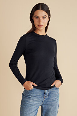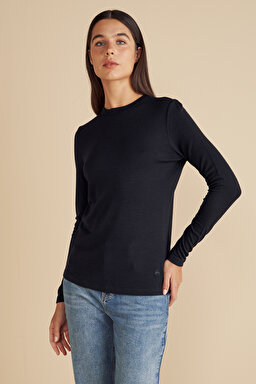 Yün Karışımlı Bisiklet Yaka Örme Bluz