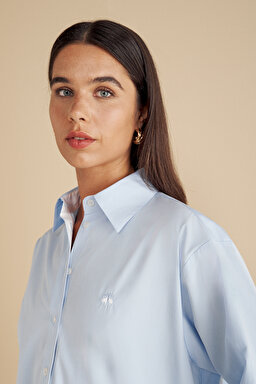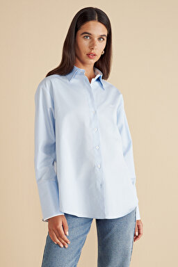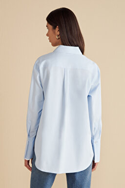 %100 Pamuk Kontrast Garnili Oversize Gömlek
