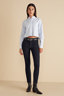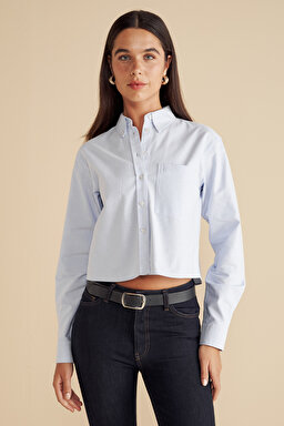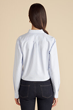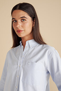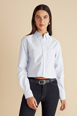 %100 Pamuk Logo Nakışlı Crop Oxford Gömlek