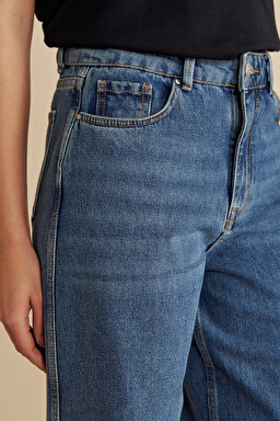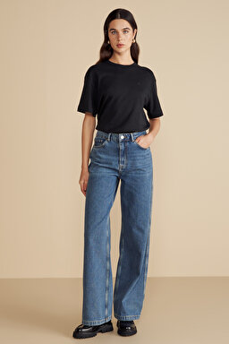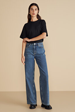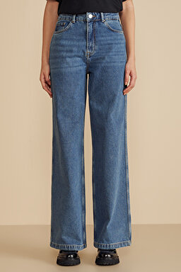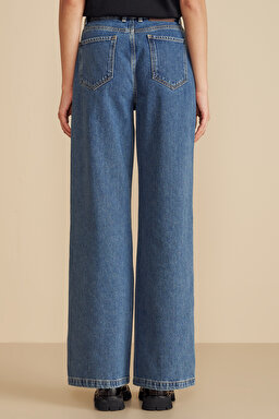 %100 Pamuk Yüksek Bel Wide Leg Denim Pantolon