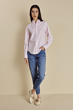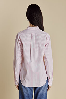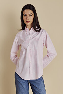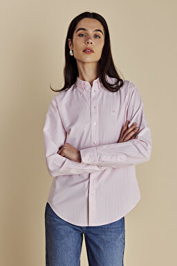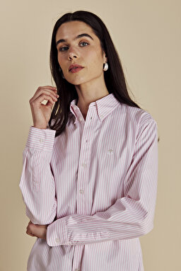 %100 Pamuk Logo Nakışlı Çizgili Oxford Gömlek