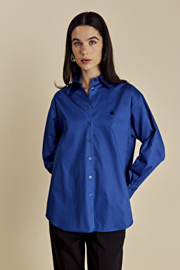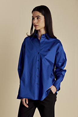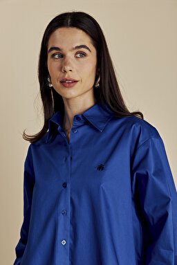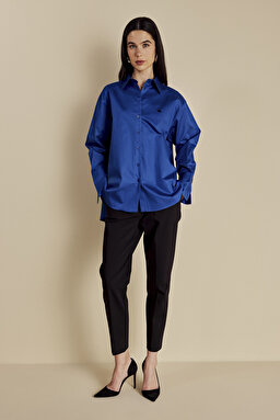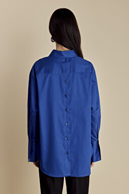 %100 Pamuk Oversize Arkası Düğme Detaylı Gömlek