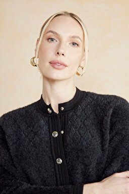 B.Y Çift Cepli Petek Desenli Triko Ceket
