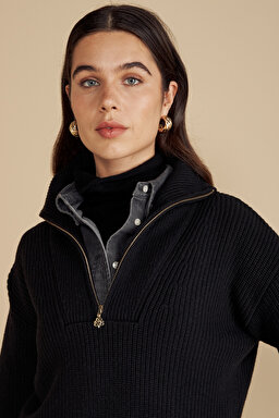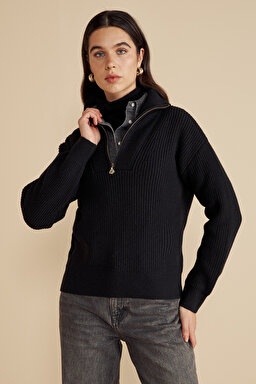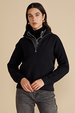 Bato Yaka Fermuarlı Kaşmir Karışımlı Kazak