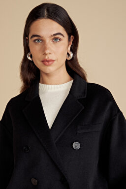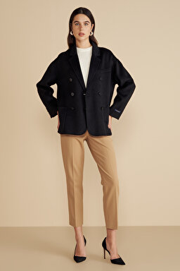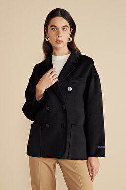 El Yapımı Dikişsiz Oversize Kaşmir Kruvaze Blazer