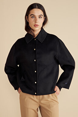 El Yapımı Dikişsiz Oversize Metal Çıtcıtlı Kaşmir Mont