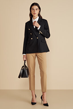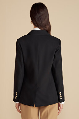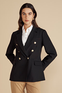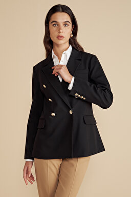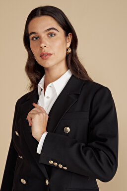 Metal Düğmeli Sivri Yakalı Kruvaze Blazer
