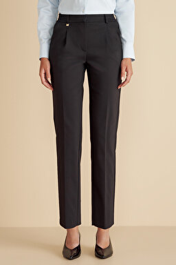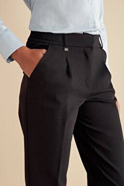 Pamuk Karışımlı Metal Logo Detaylı Yarım Lastikli Pantolon