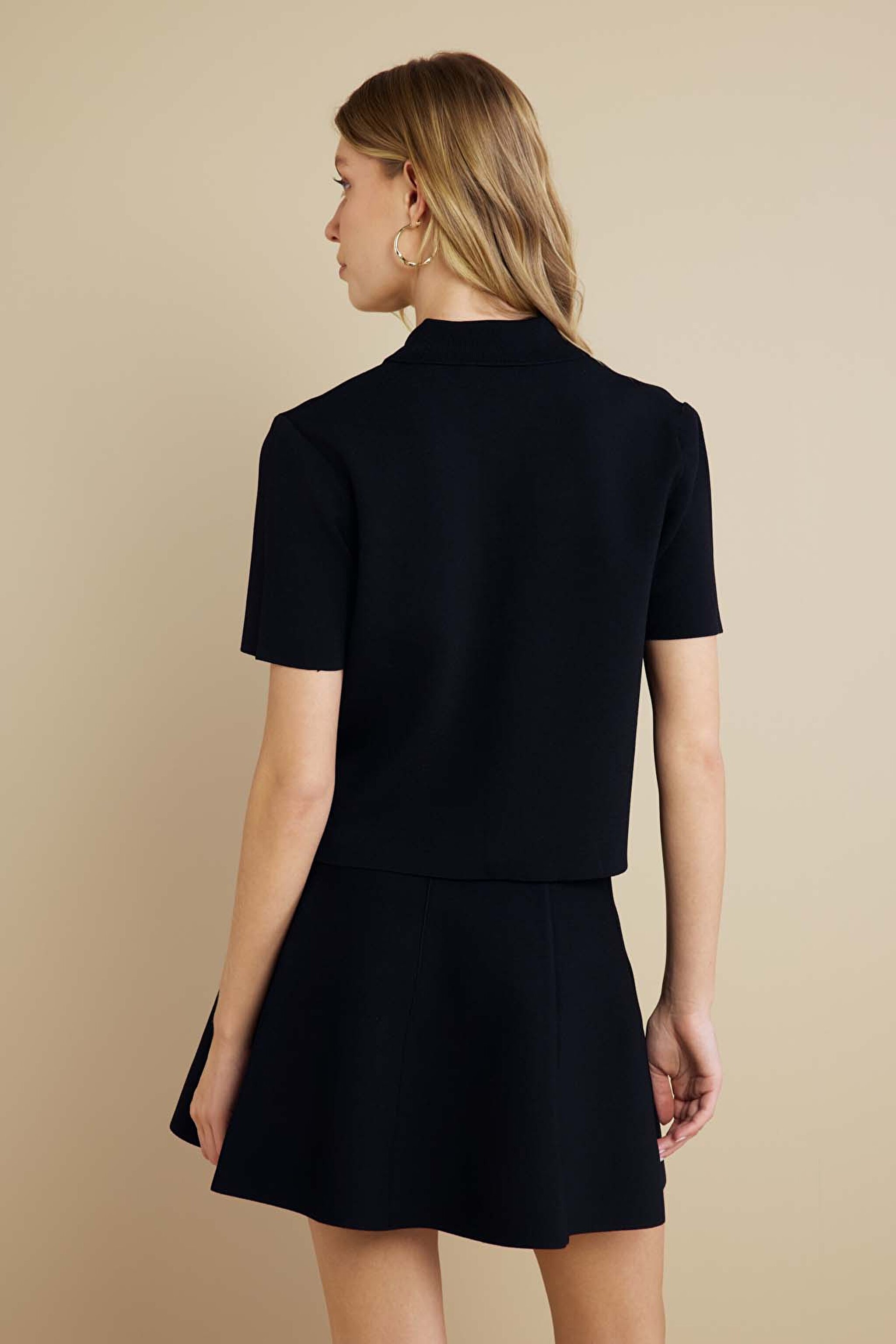 Polo Yaka Metal Düğmeli Rayon Triko Ceket