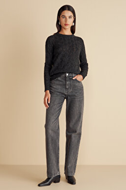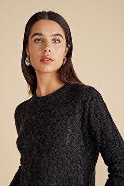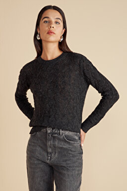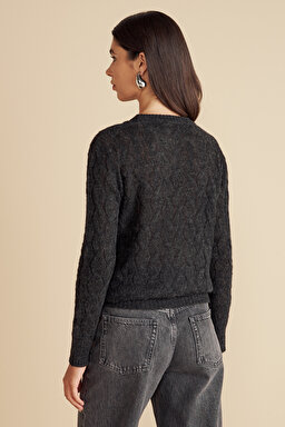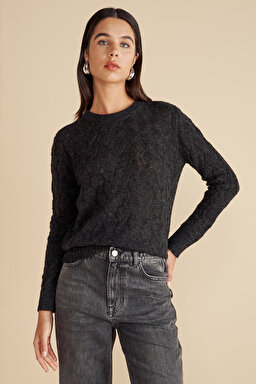 Yün Karışımlı Bisiklet Yaka Saç Örgü Yün Kazak