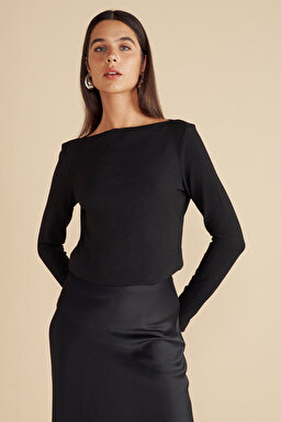 Yün Karışımlı Kayık Yaka Örme Bluz