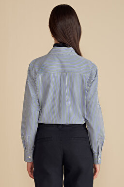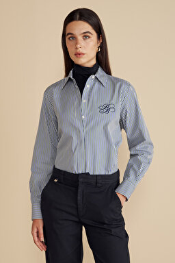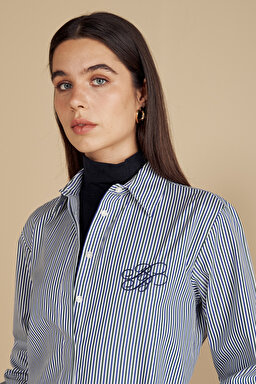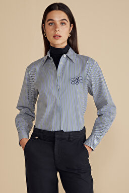 %100 Pamuk Gizli Patlı Logo Nakışlı Çizgili Gömlek